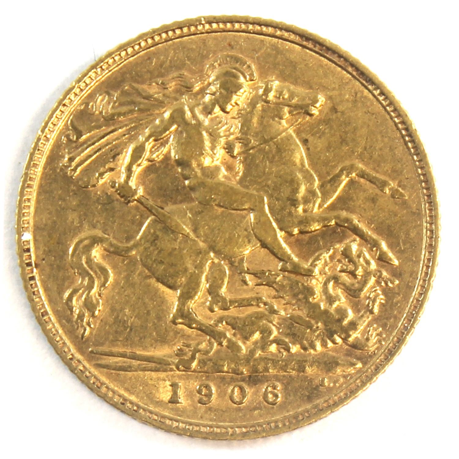 1906 Great Britain Gold 1/2 Sovereign EF. Contains .1177oz of Fine Gold.