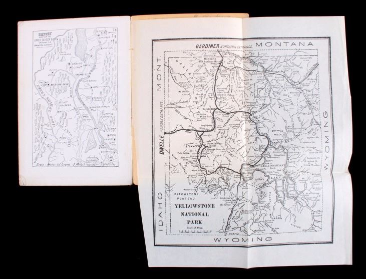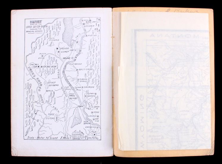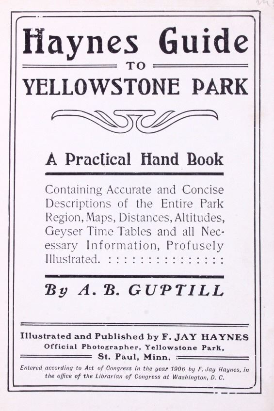 This is a scarce 1906 edition of "Haynes Guide to Yellowstone Park: A Practical Handbook" by A.B. Guptill. The guide contains numerous illustrations, maps and diagrams. It is complete with the original fold out map inside the rear cover. The guide shows good overall condition with some period marking in pencil in one location. The book measures 4.75" x 6.75". The fold out map measures 8" x 9.75".