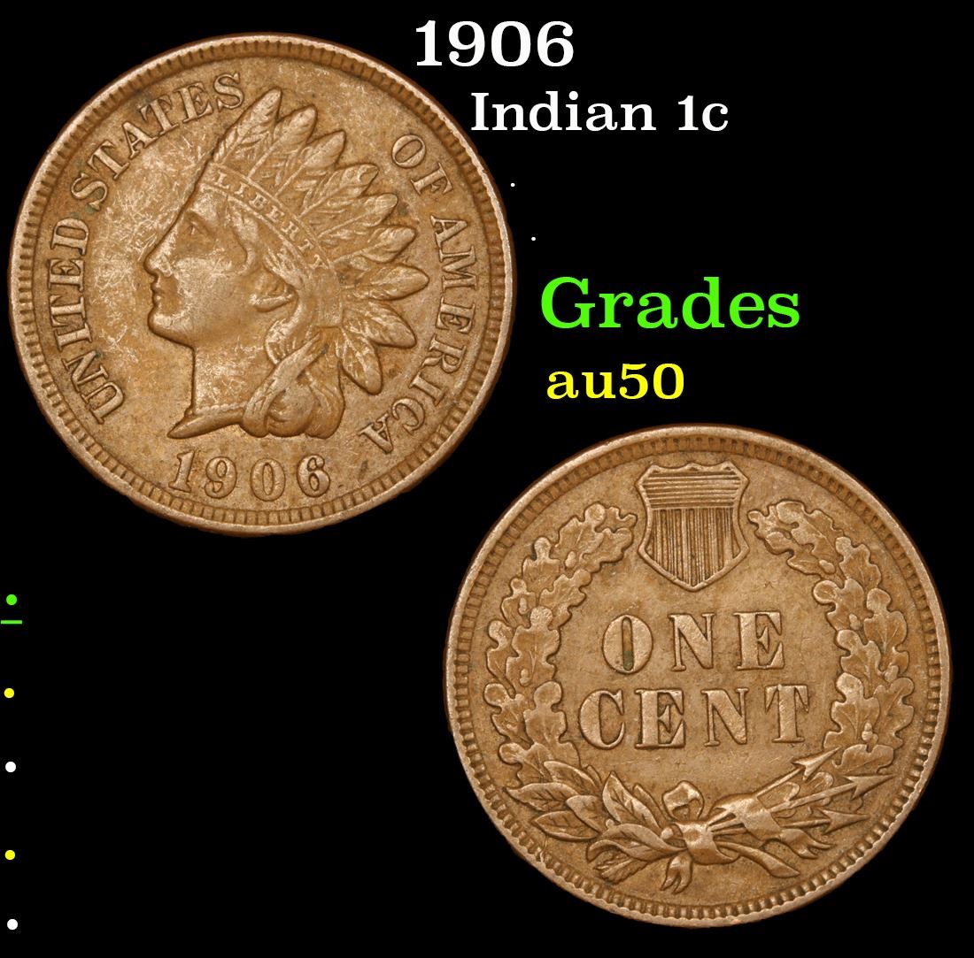 1906 Indian Cent 1c Grades AU, Almost Unc.