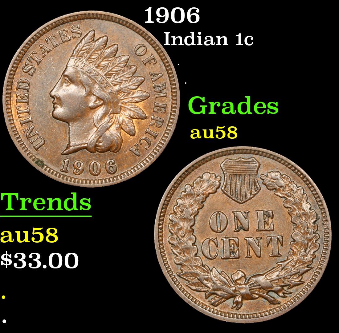 1906 Indian Cent 1c Grades Choice AU/BU Slider.