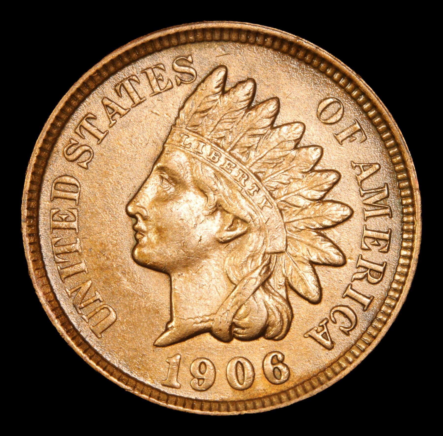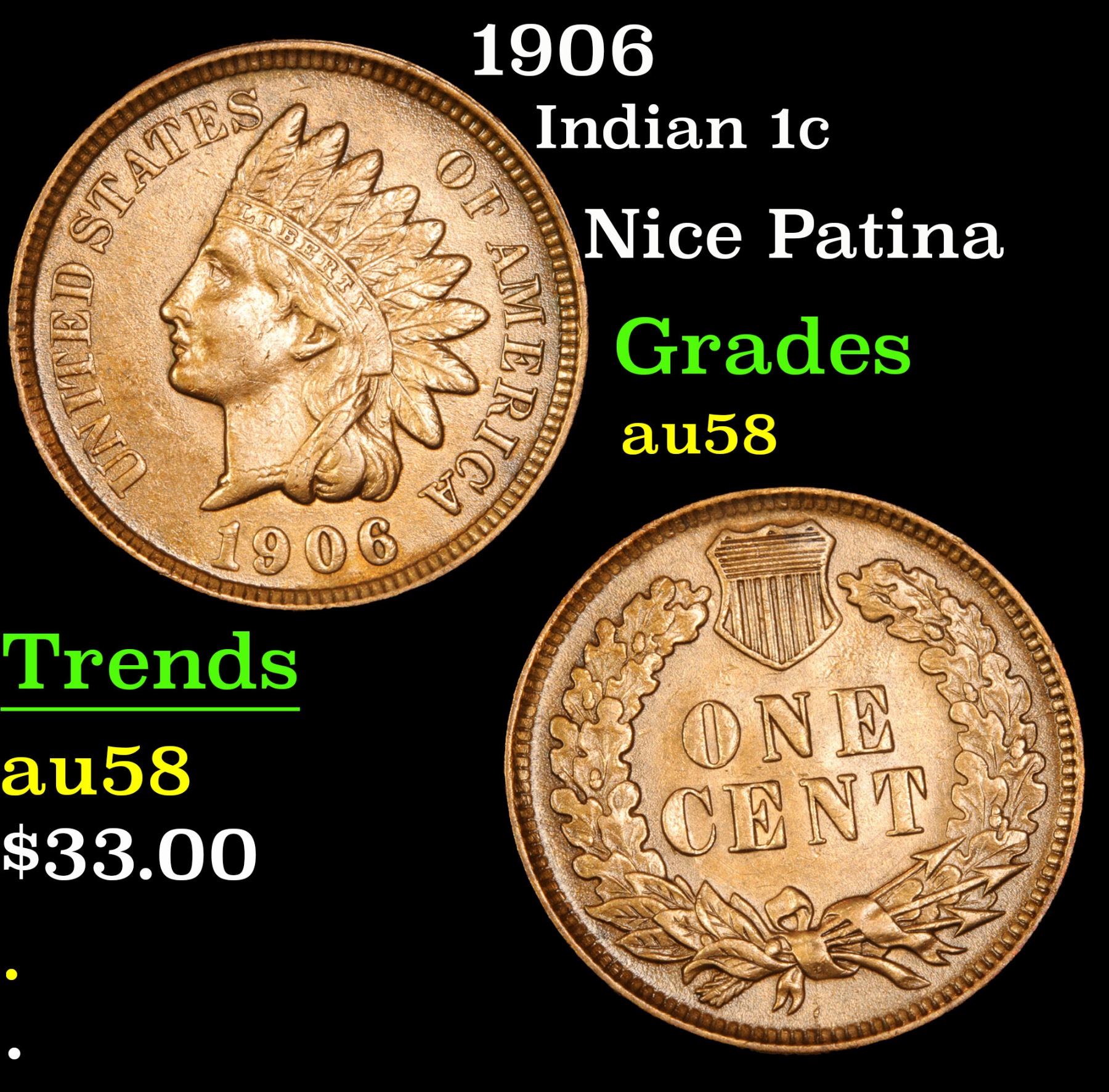 1906 Indian Cent 1c Grades Choice AU/BU Slider. Nice Patina