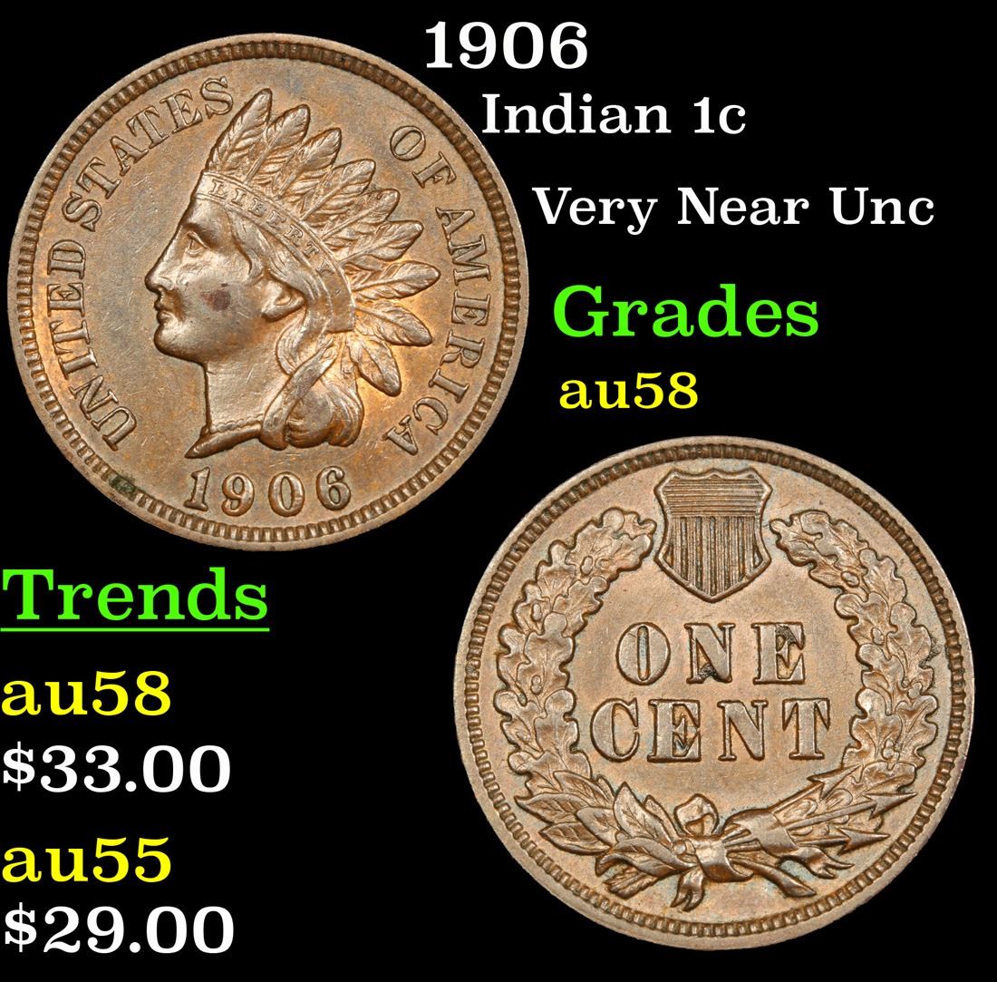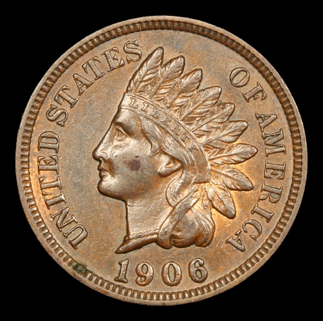 1906 . Very Near Unc Indian Cent 1c Grades Choice AU/BU Slider.