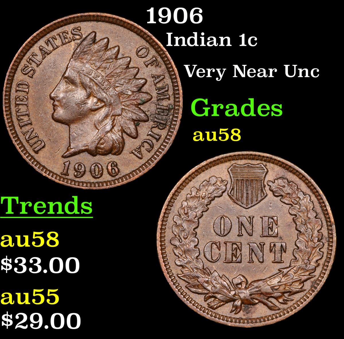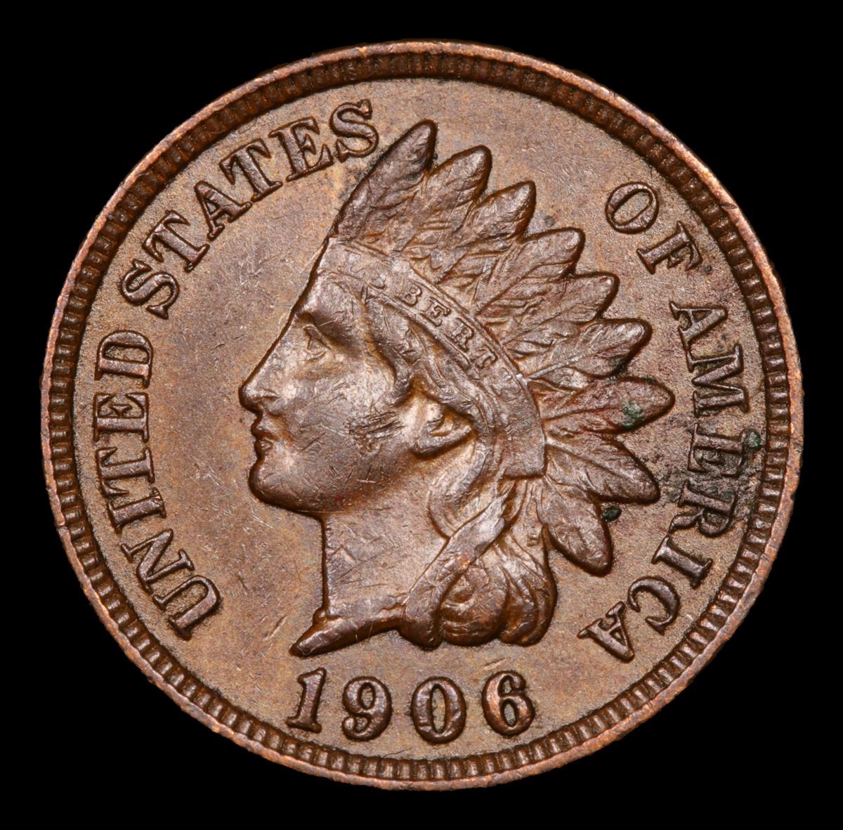 1906 . Very Near Unc Indian Cent 1c Grades Choice AU/BU Slider.