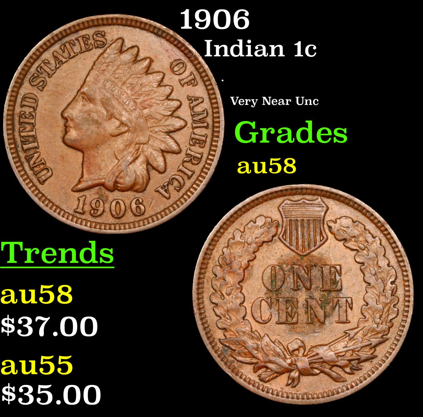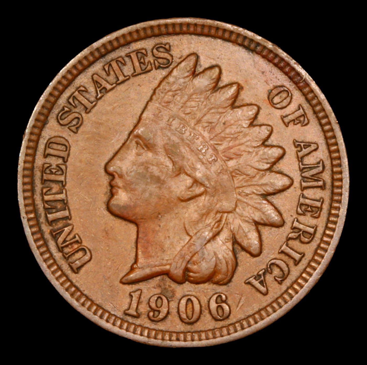 1906 Indian Cent 1c Grades Choice AU/BU Slider.
