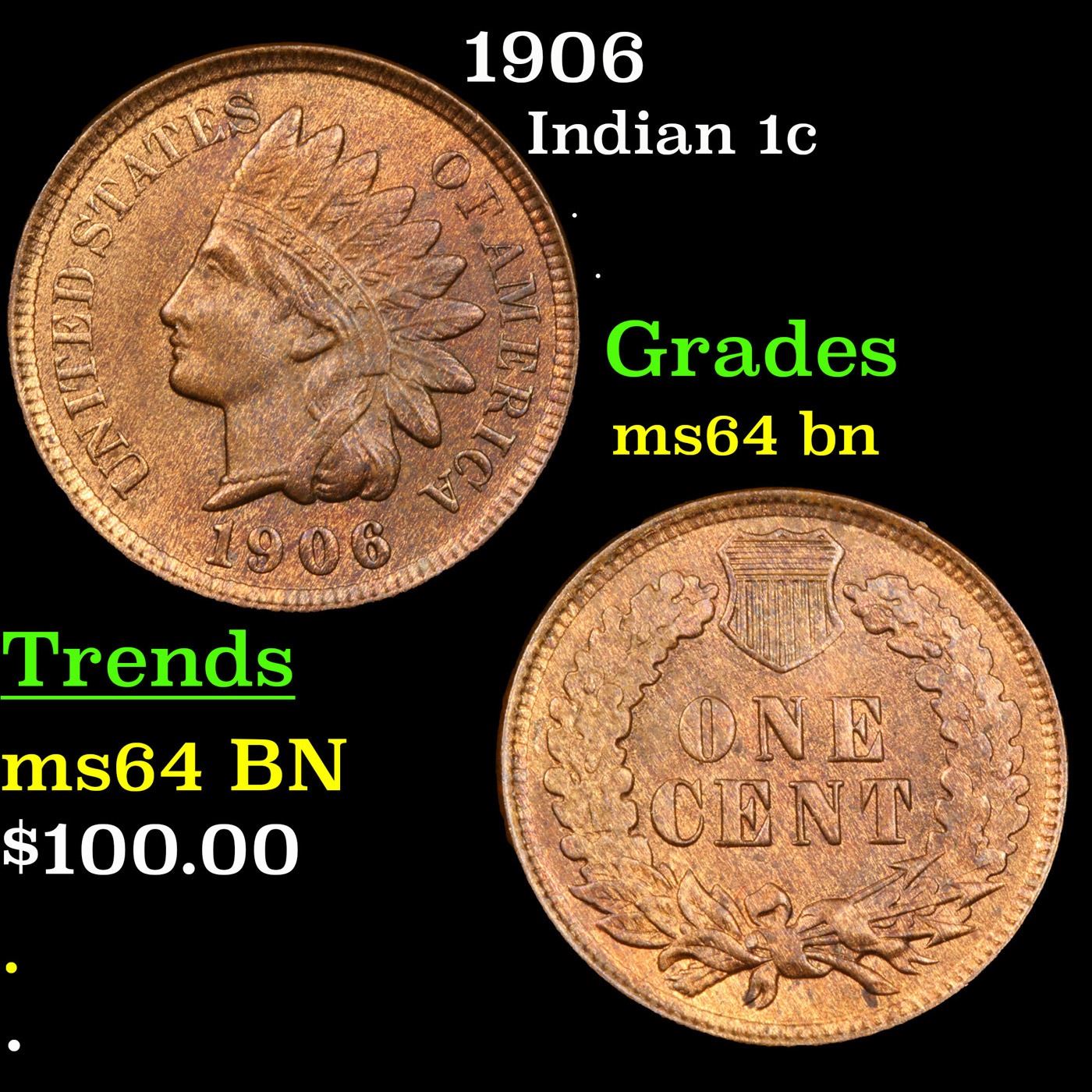 1906 Indian Cent 1c Grades Choice Unc BN.