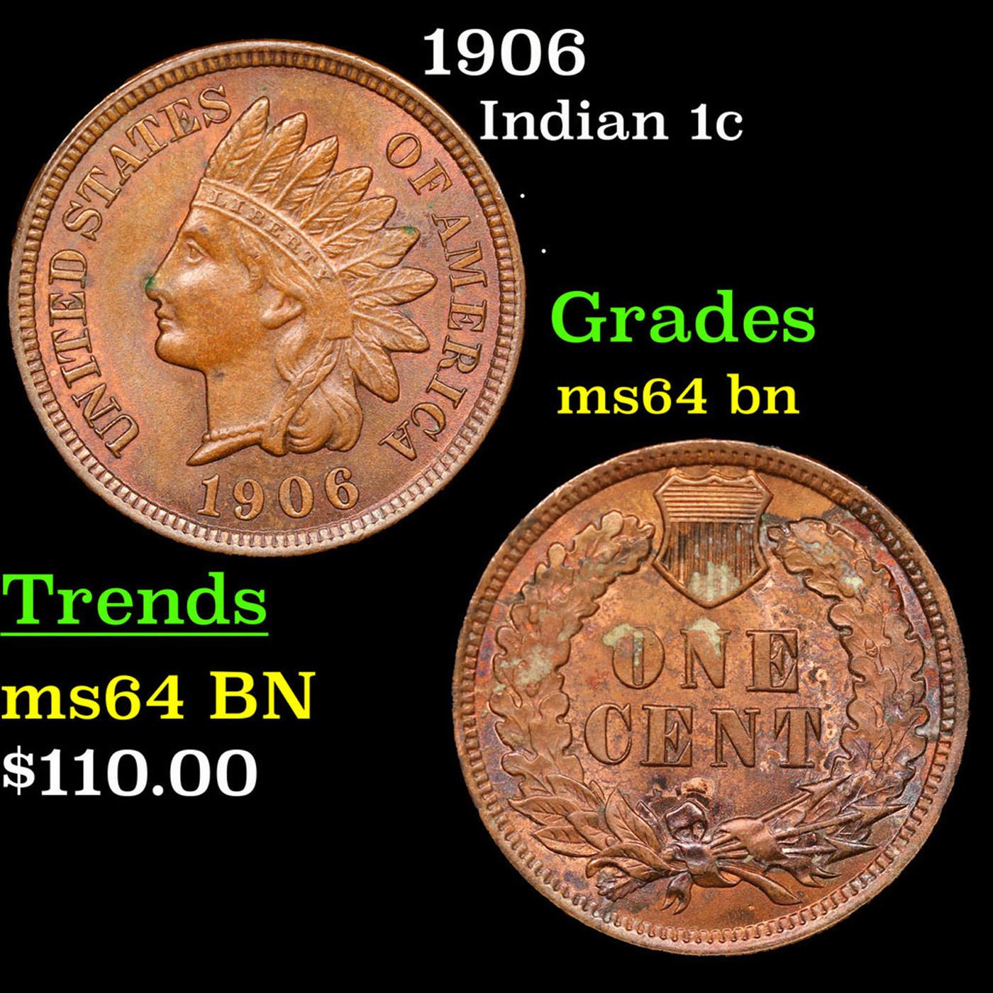 1906 Indian Cent 1c Grades Choice Unc BN.