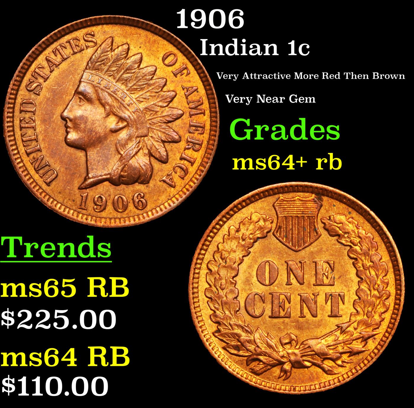 1906 Indian Cent 1c Grades Choice+ Unc RB.