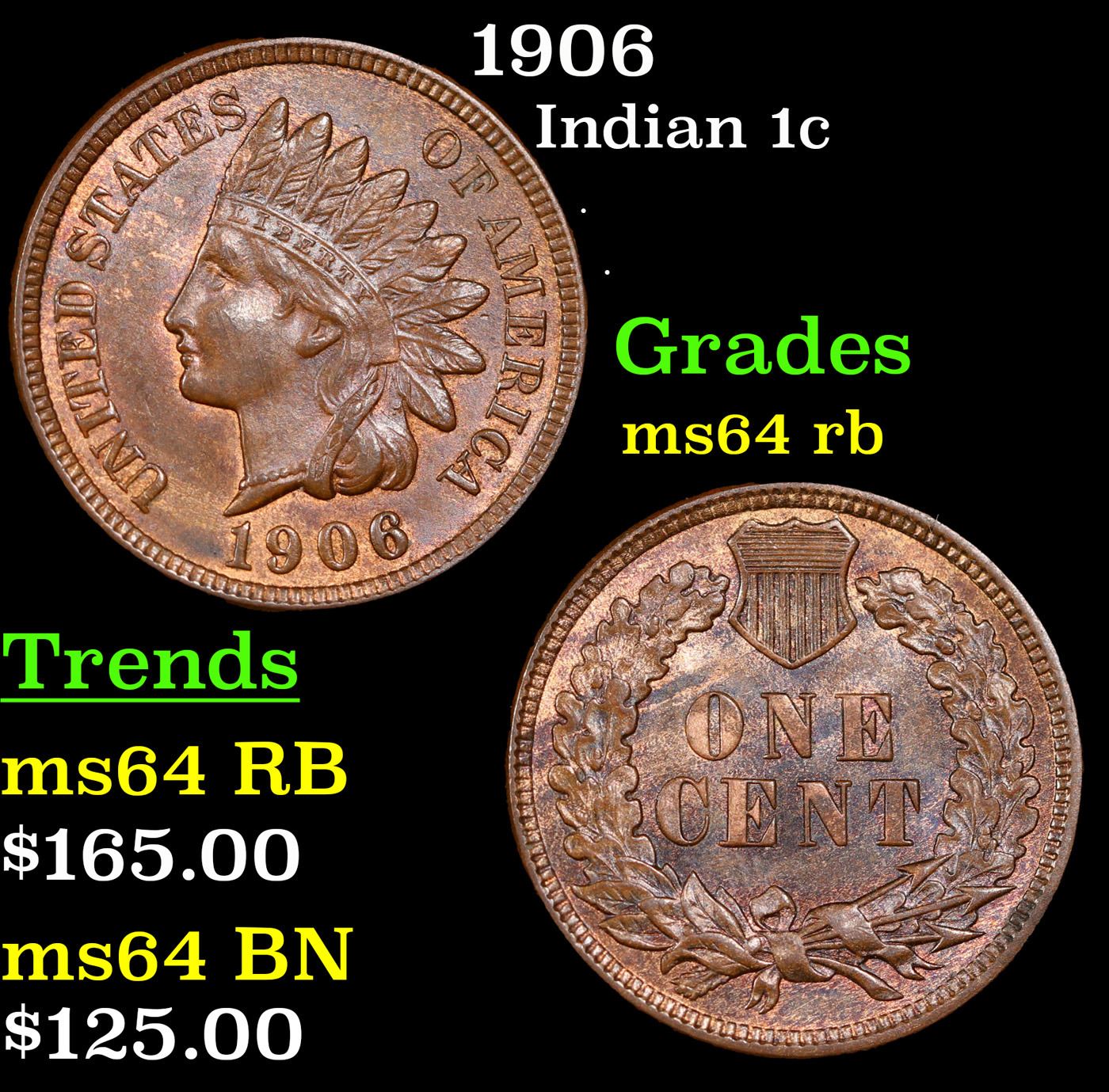 1906 Indian Cent 1c Grades Choice Unc RB.