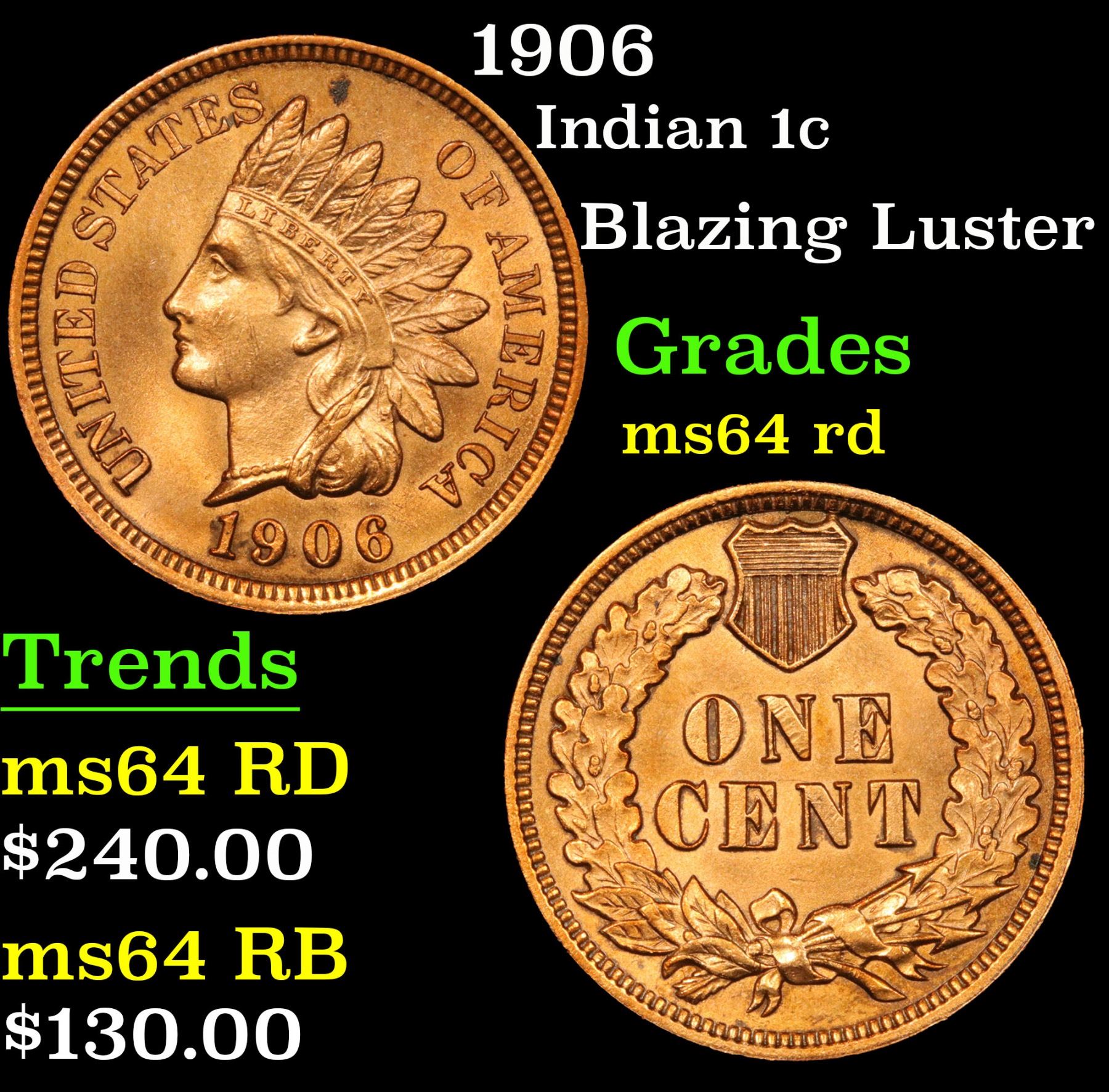 1906 Indian Cent 1c Grades Choice Unc RD. Blazing Luster A Corey's Pick