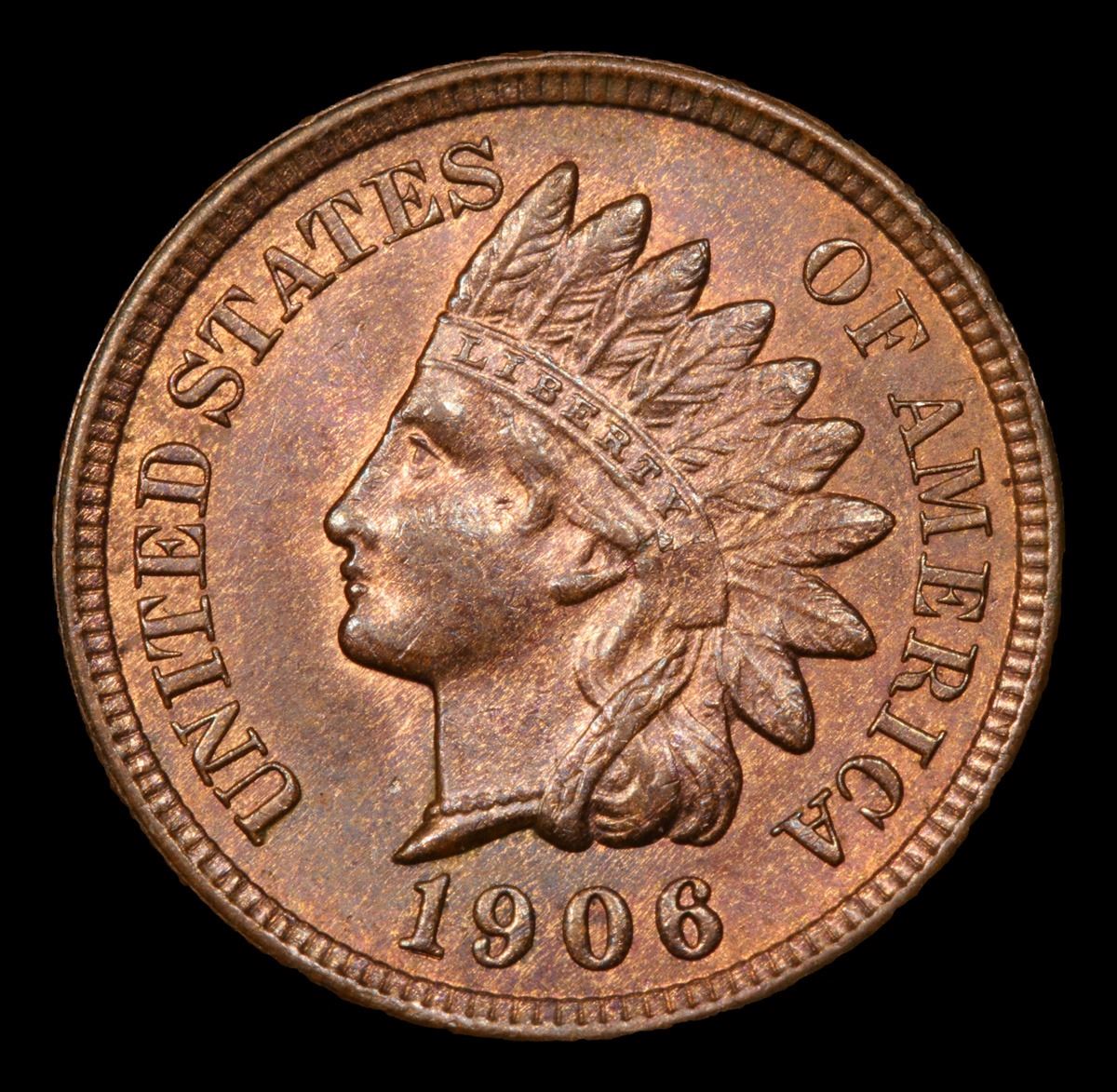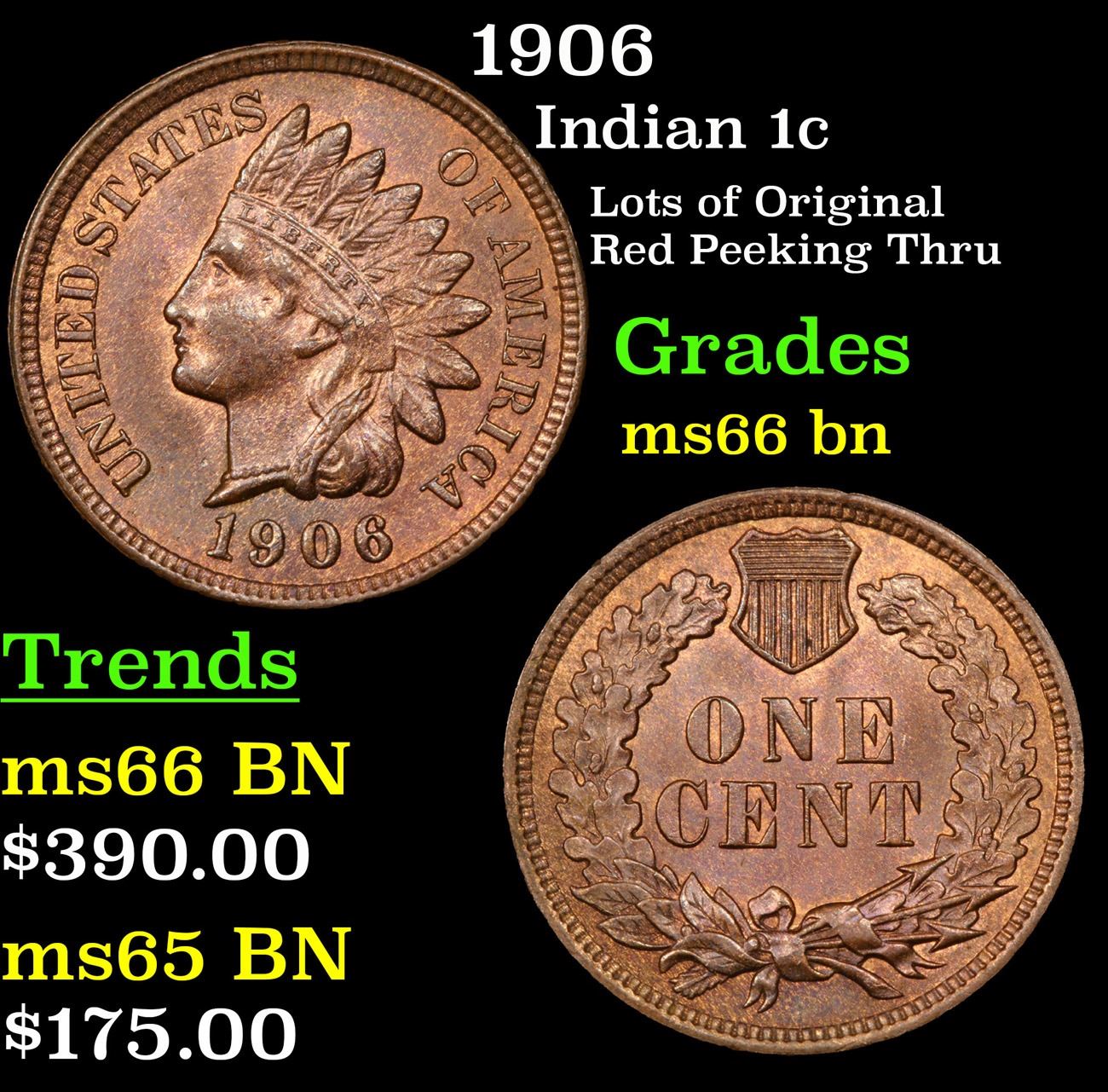 1906 Lots of Original Red Peeking Thru . Indian Cent 1c Grades GEM+ Unc BN.