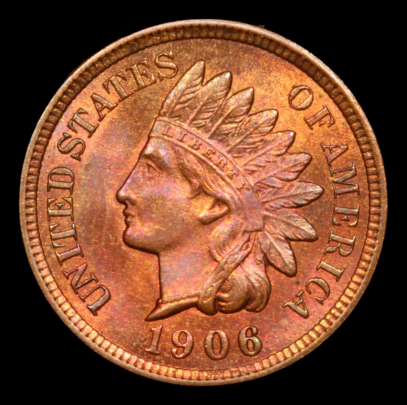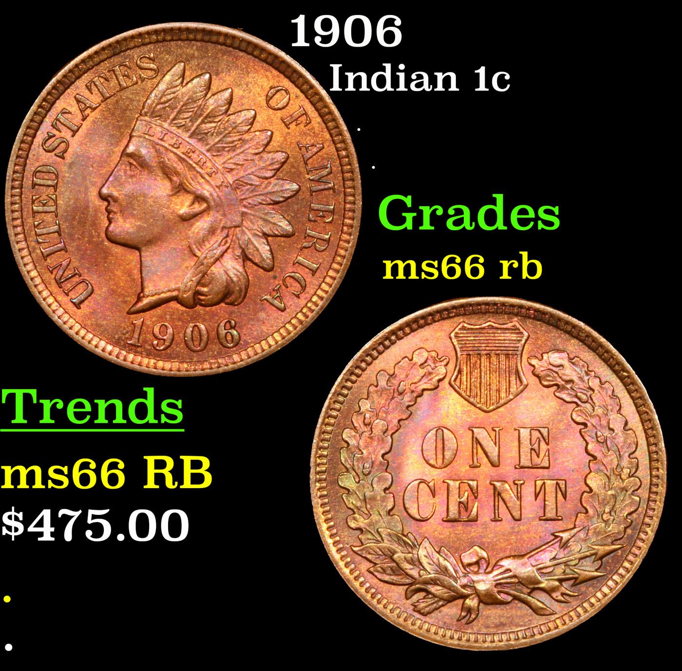 1906 Indian Cent 1c Grades GEM+ Unc RB.