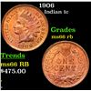 1906 Indian Cent 1c Grades GEM+ Unc RB.