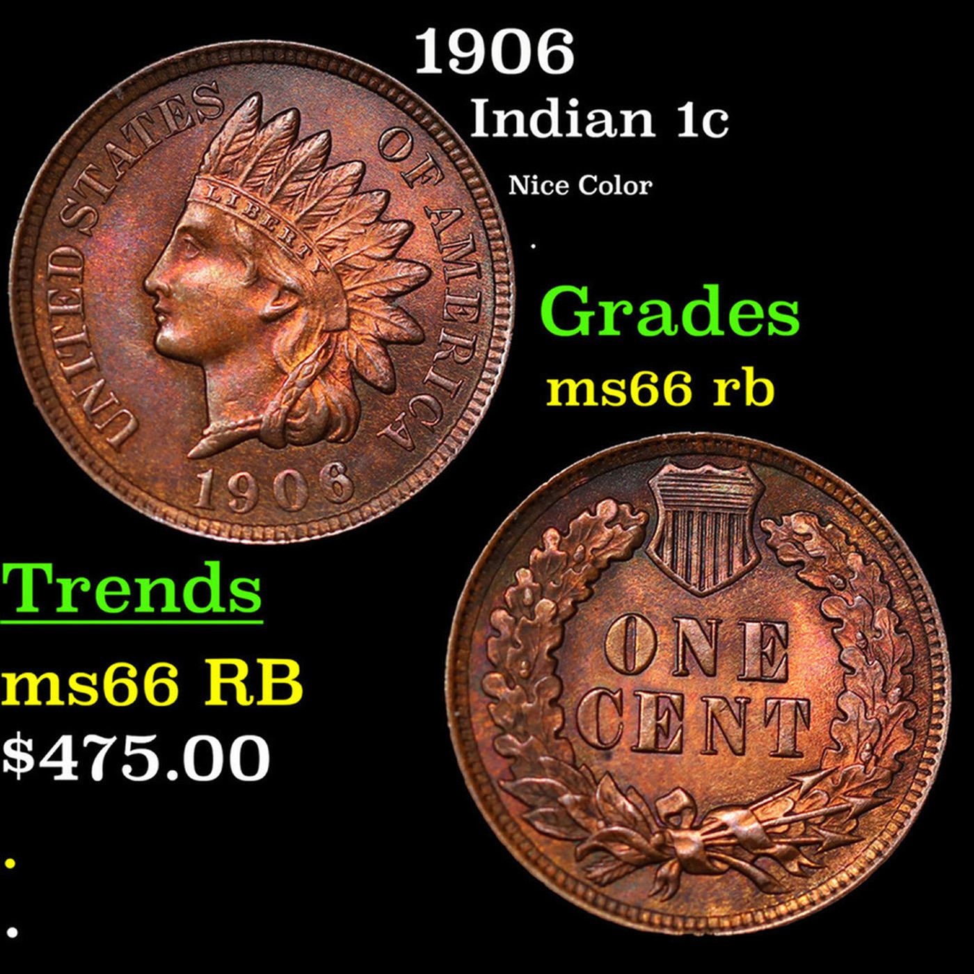 1906 Indian Cent 1c Grades GEM+ Unc RB. A Corey's Pick, Bid to Win Coin