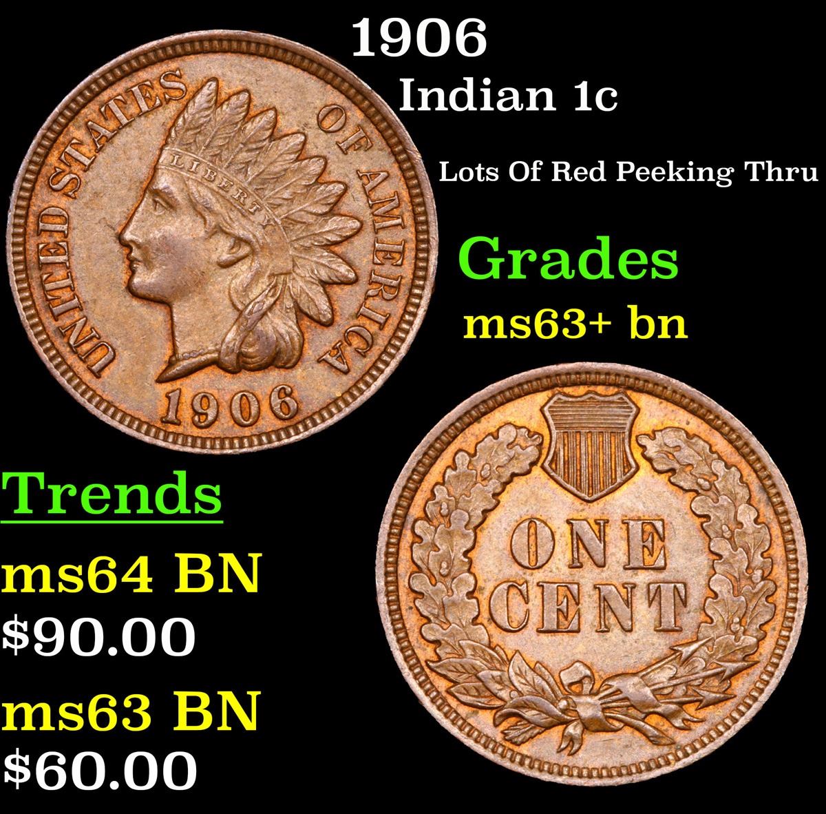 1906 Lots Of Red Peeking Thru . Indian Cent 1c Grades Select+ Unc BN.