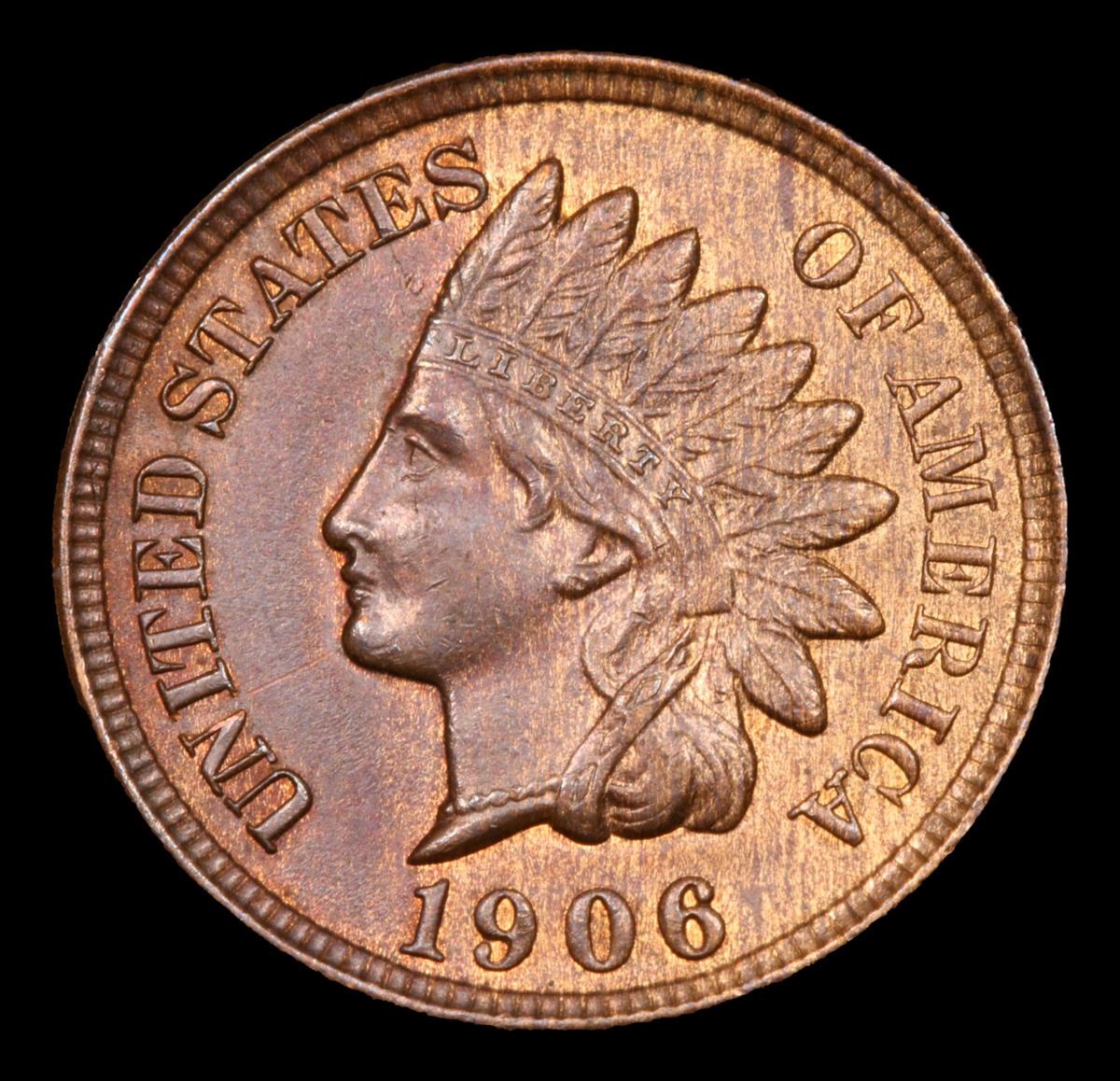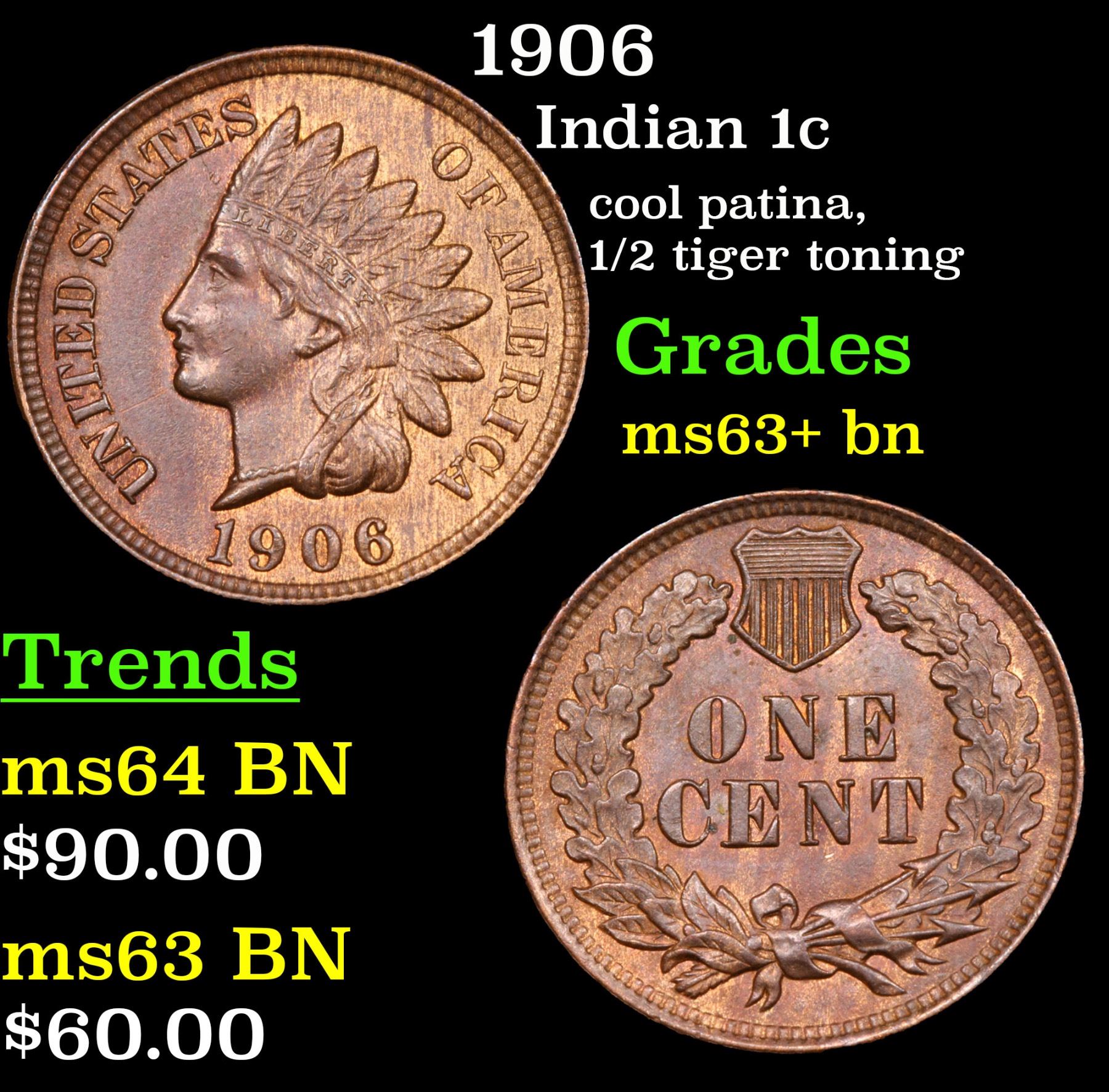 1906 cool patina, 1/2 tiger toning . Indian Cent 1c Grades Select+ Unc BN.