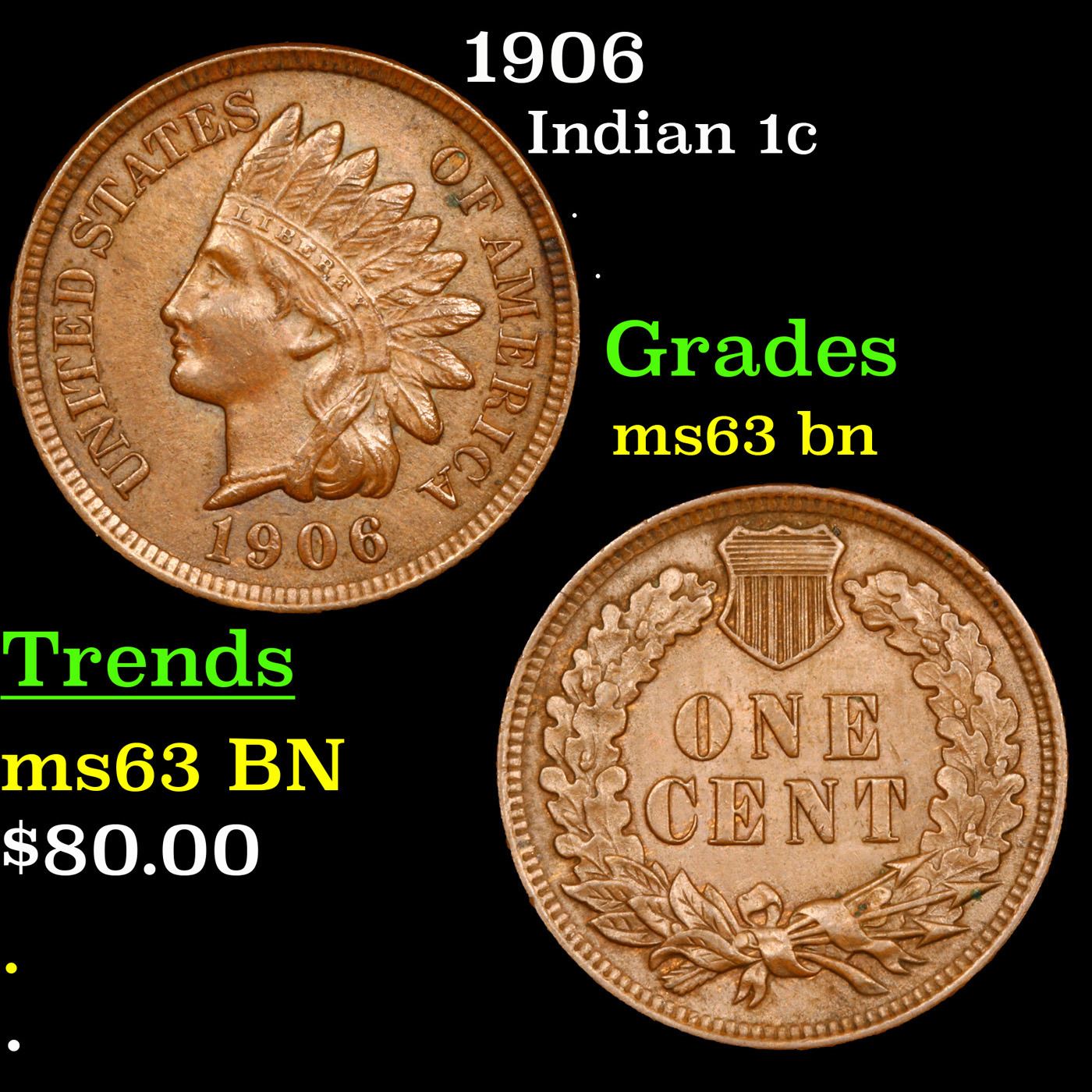 1906 Indian Cent 1c Grades Select Unc BN.
