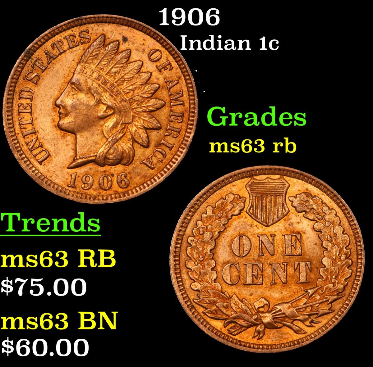 1906 Indian Cent 1c Grades Select Unc RB.