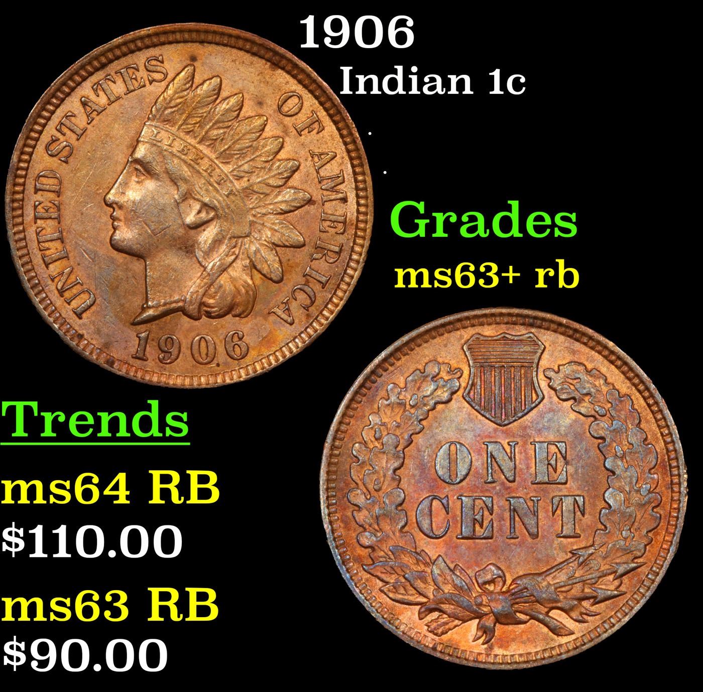 1906 Indian Cent 1c Grades Select+ Unc RB.