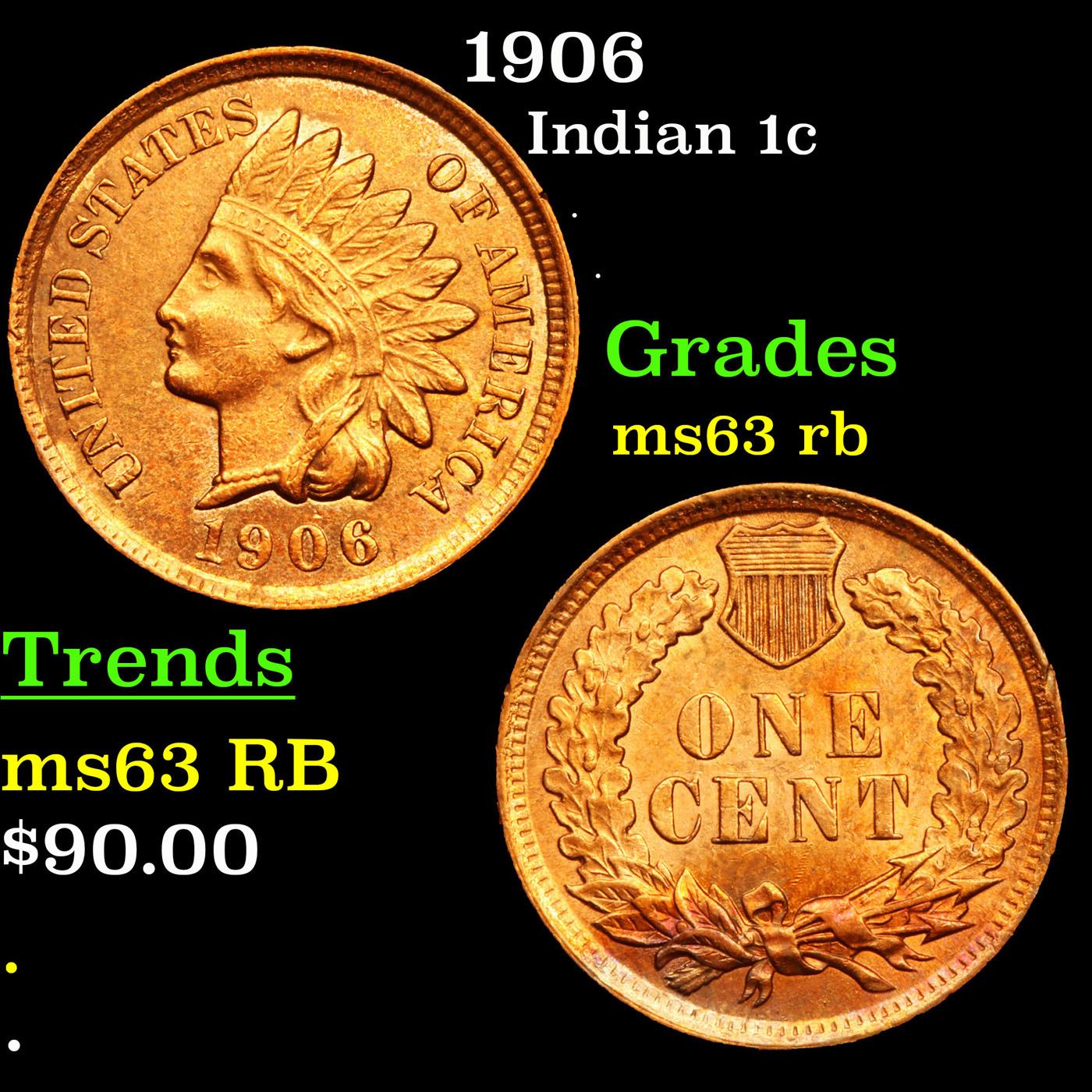 1906 Indian Cent 1c Grades Select Unc RB.