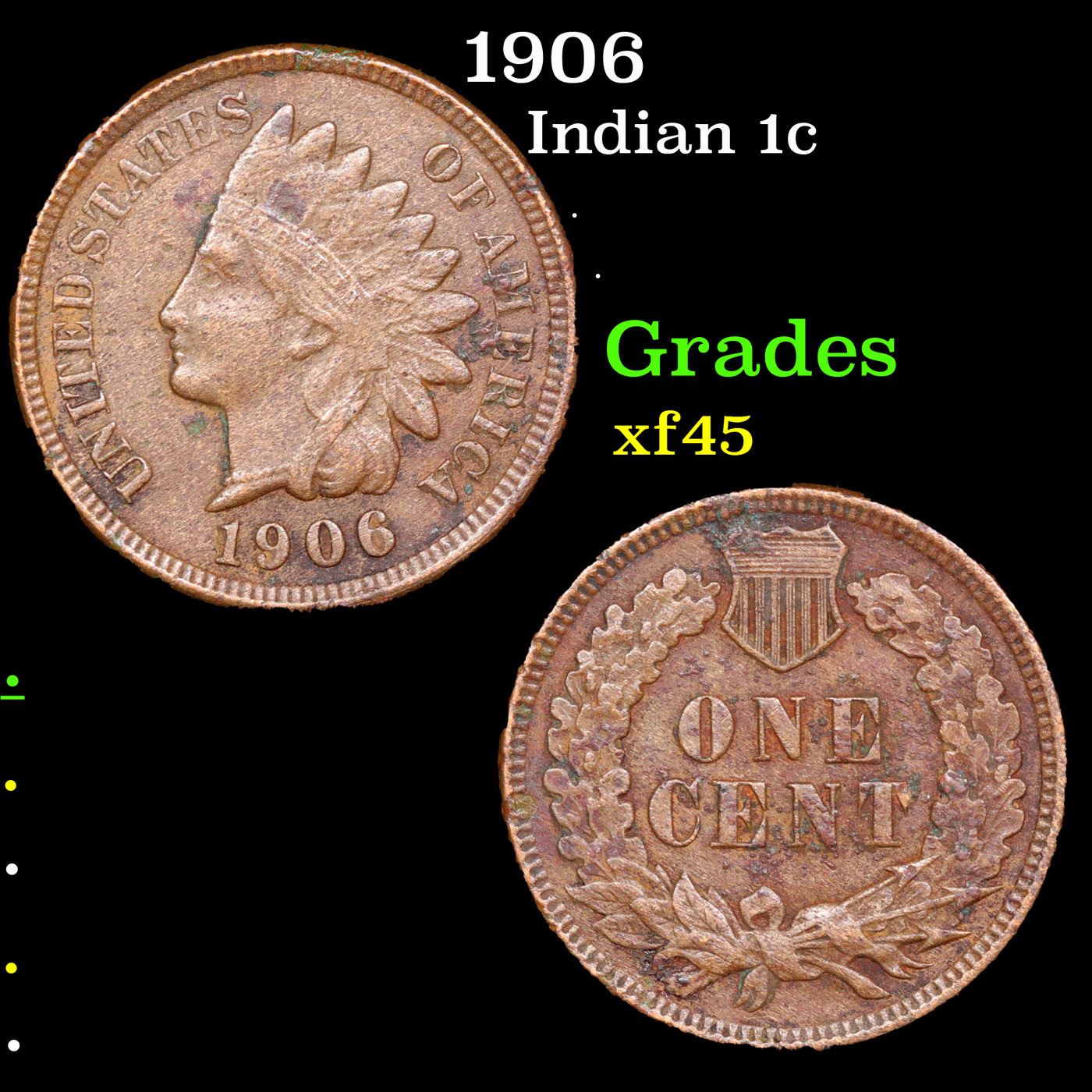 1906 Indian Cent 1c Grades xf+.