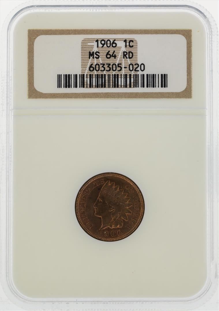 One 1906 Indian Head 1 Cent Coin NGC MS64 RD. NGC Certified.