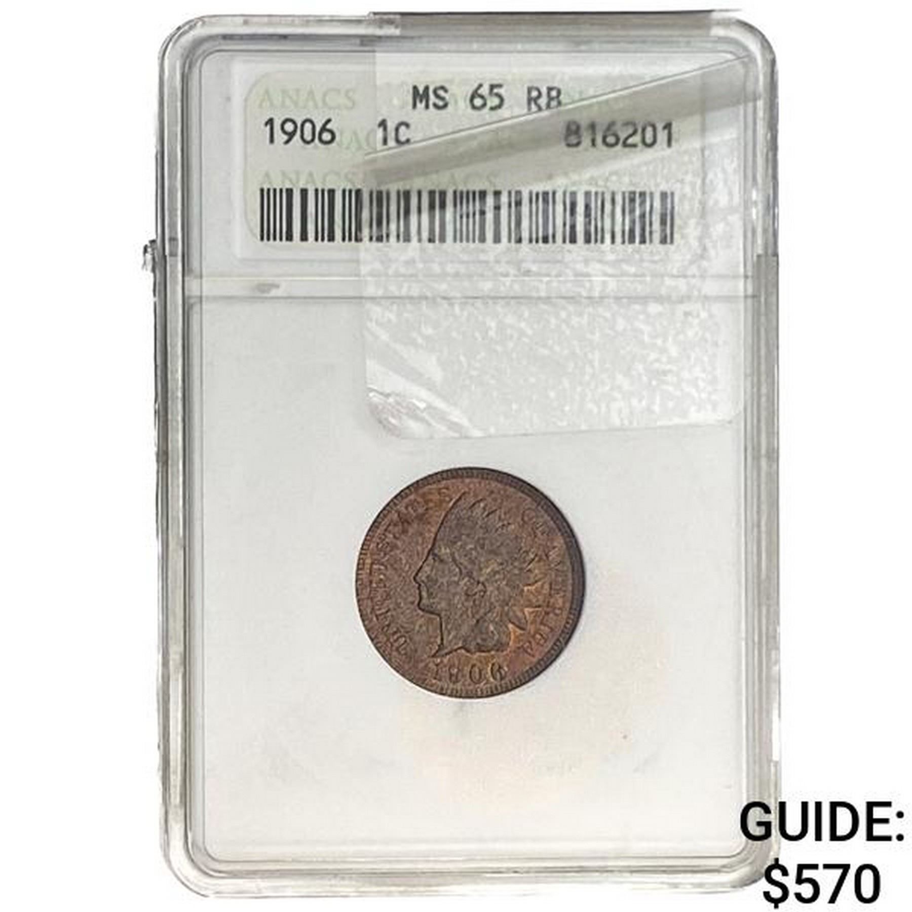 1906 Indian Head Cent ANACS MS65 RB