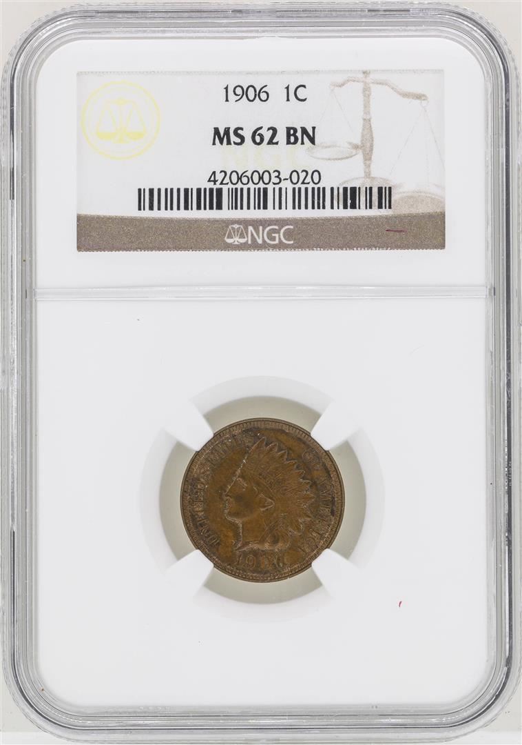 One 1906 Indian Head Cent Coin NGC MS62BN. NGC Certified.