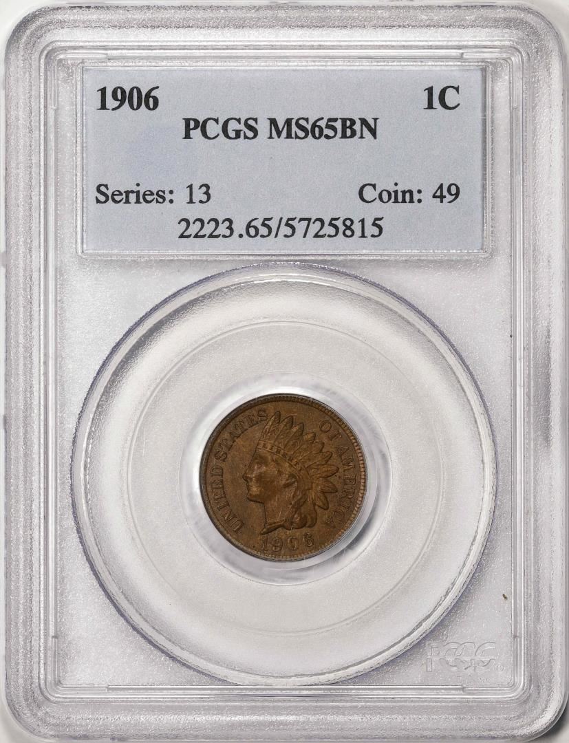 One 1906 Indian Head Cent Coin PCGS MS65BN. PCGS Graded.