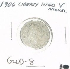 1906 LIBERTY HEAD "V" NICKEL *GOOD-8 GRADE*!! ***Coin & Currency Grades, Conditions and Values are not Northern Colorado Estate Liquidators Responsibilty. Grades, Condition and Values are determined by Consigner(s) & Buyers ONLY***