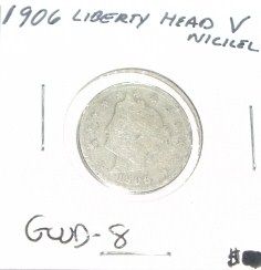 1906 LIBERTY HEAD "V" NICKEL *GOOD-8 GRADE*!! ***Coin, Currency & All Items Listed in this auction - Grades, Conditions and Values are not Safe Deposit Coins LLC Responsibilty. Grades, Condition and Values are determined by Consigner(s) & Buyers ONLY***