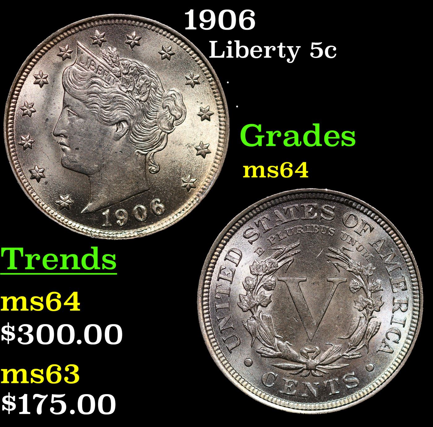 1906 Liberty Nickel 5c Grades Choice Unc.