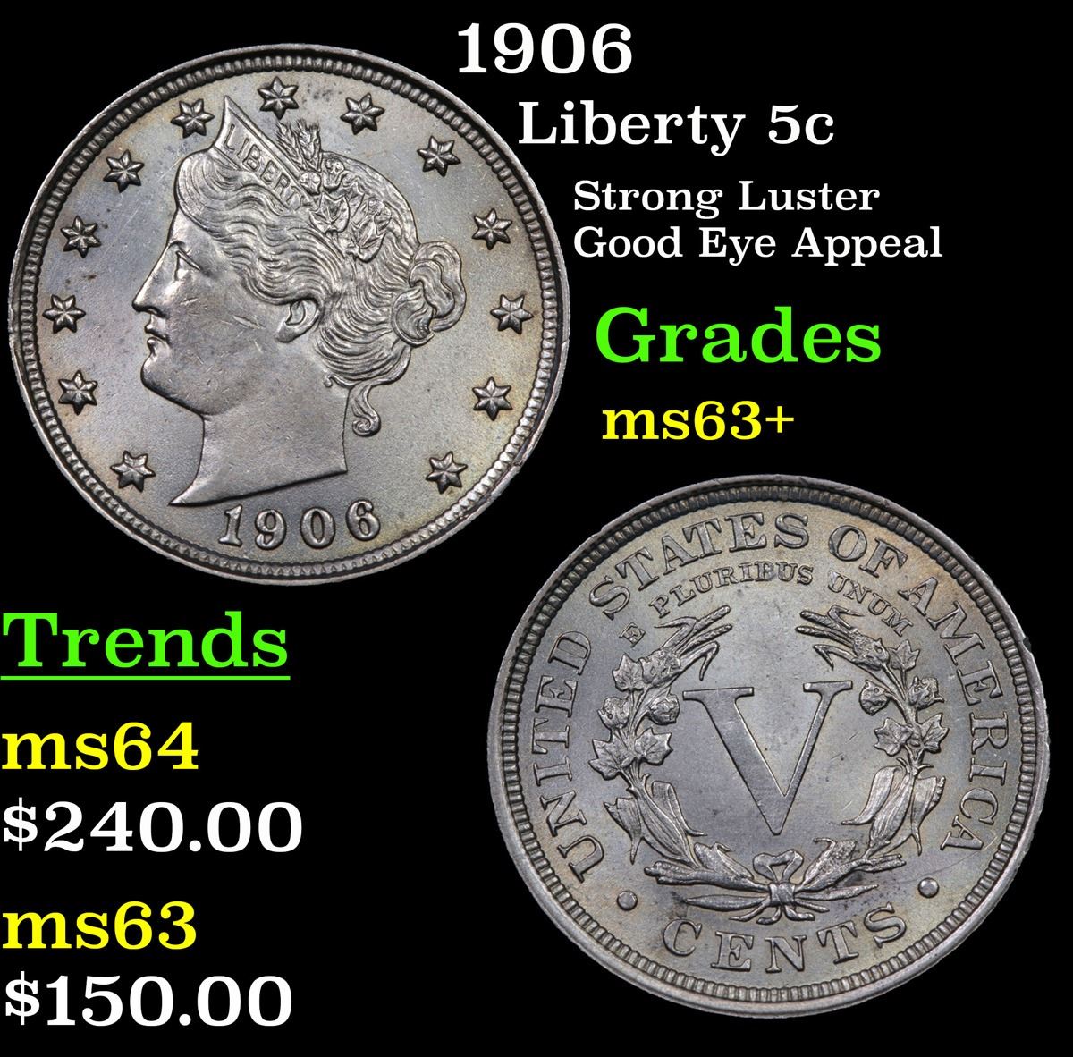 1906 Liberty Nickel 5c Grades Select+ Unc.