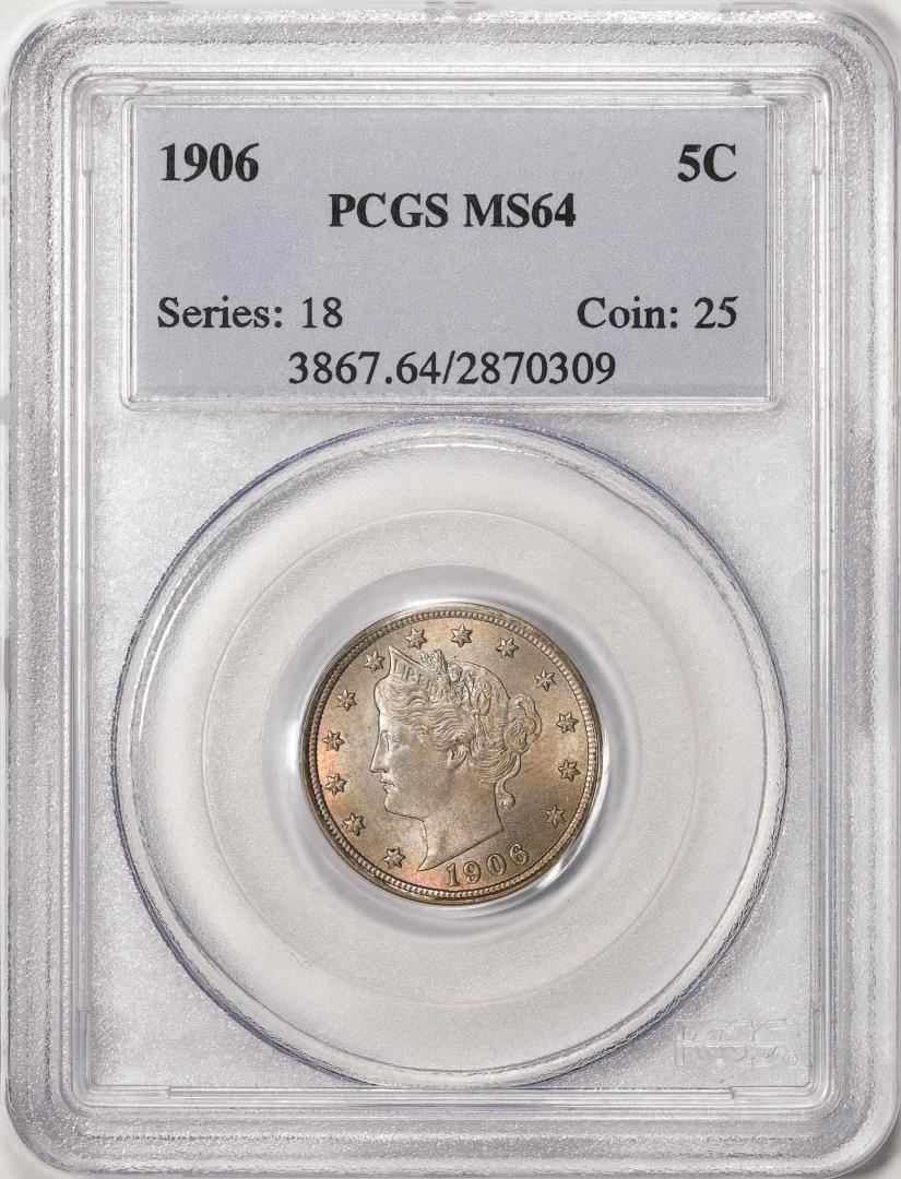 One 1906 Liberty V Nickel Coin PCGS MS64. PCGS Graded.