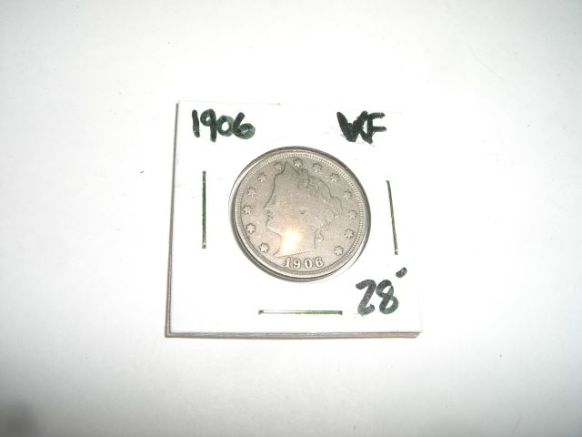 1906 Liberty "V" Nickel RFD Book Value $28+ *Nice Early VERY FINE Grade Nickel ***Coin, Currency & All Items Listed in this auction - Grades, Conditions and Values are not Safe Deposit Coins LLC Responsibilty. Grades, Condition and Values are determined by Consigner(s) & Buyers