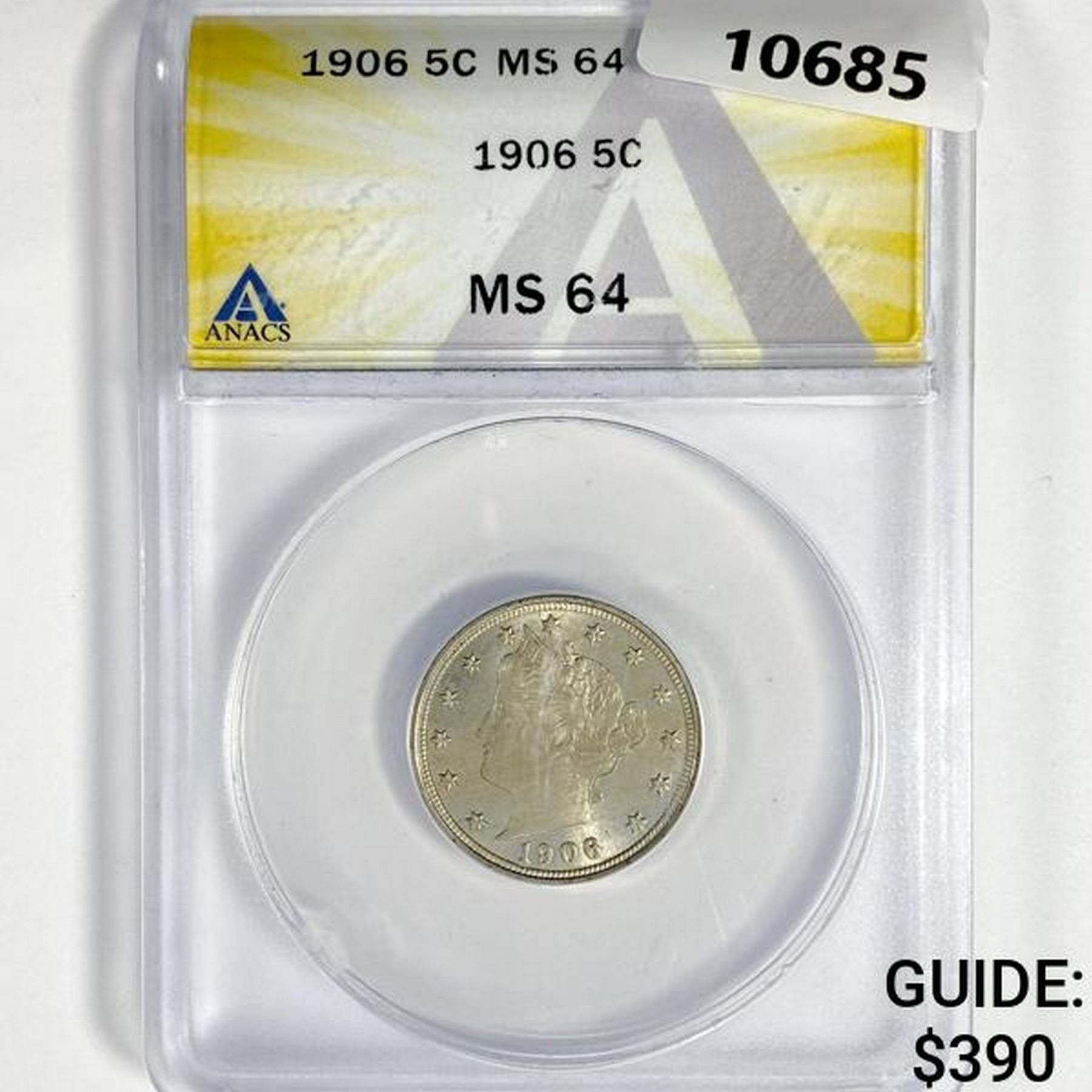 1906 Liberty Victory Nickel ANACS-MS64