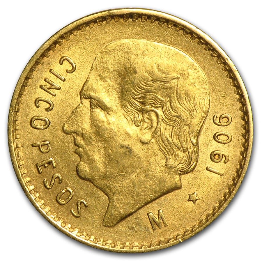1906 Mexican Gold 5 Pesos BU