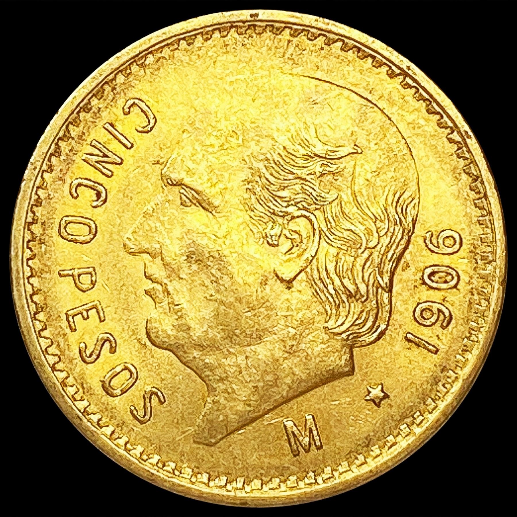 1906 Mexico .1206oz Gold 5 Pesos UNCIRCULATED