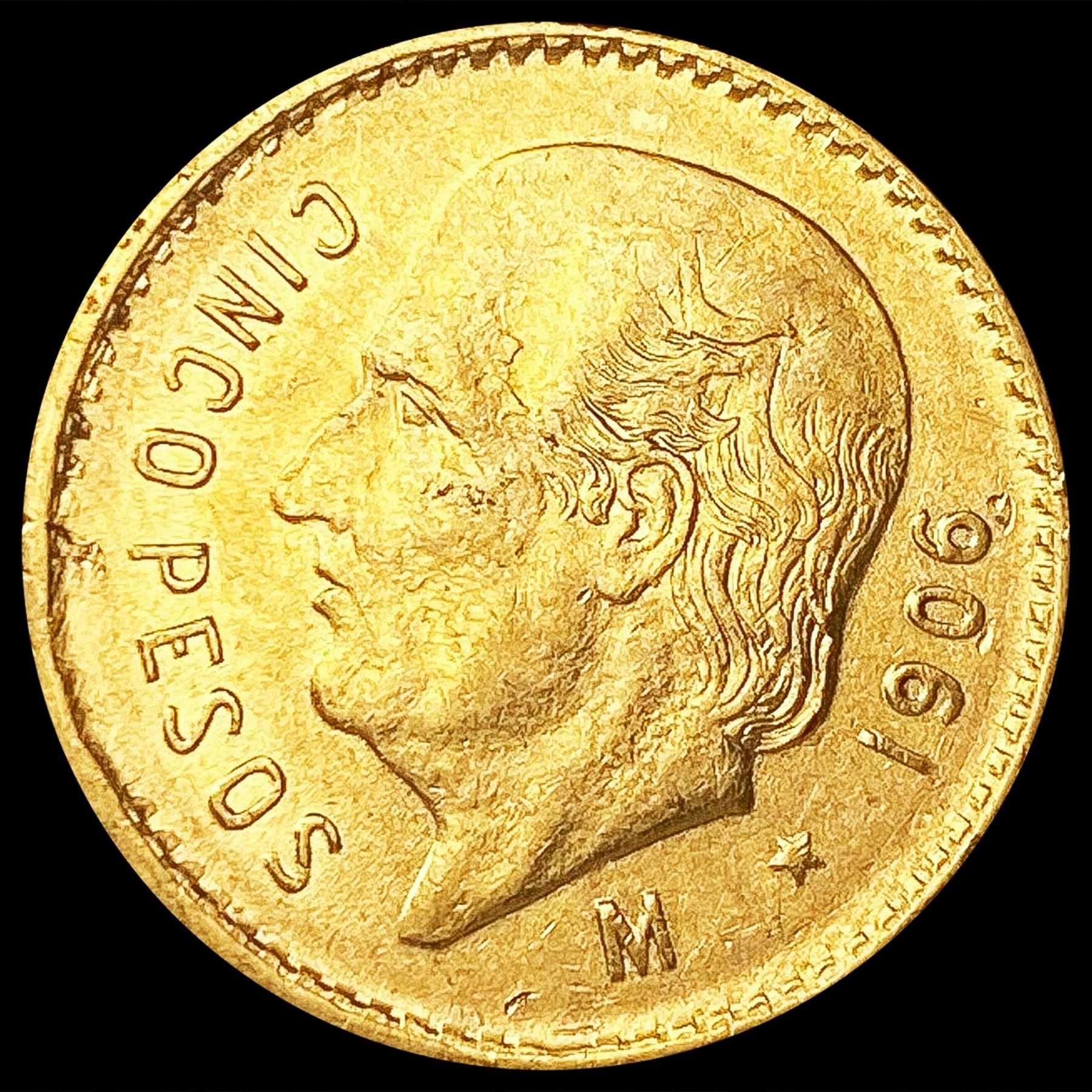1906 Mexico .1206oz Gold 5 Pesos UNCIRCULATED