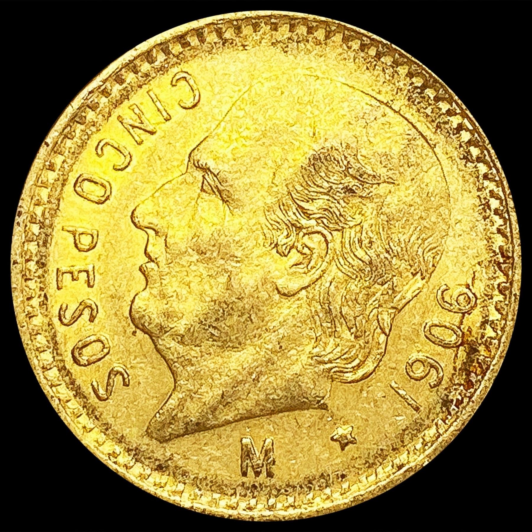 1906 Mexico .1206oz Gold 5 Pesos UNCIRCULATED