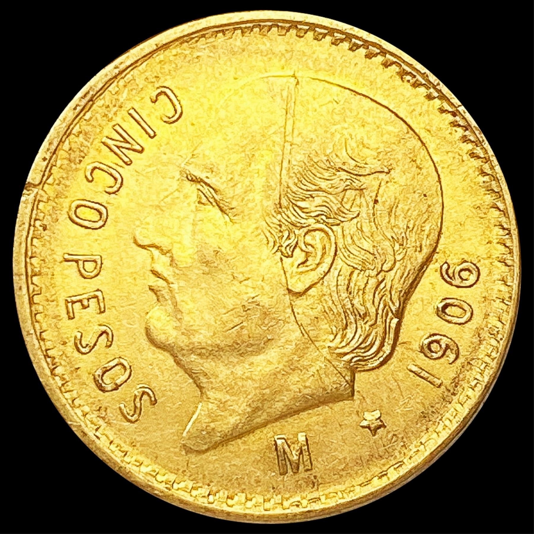 1906 Mexico .1206oz Gold 5 Pesos UNCIRCULATED