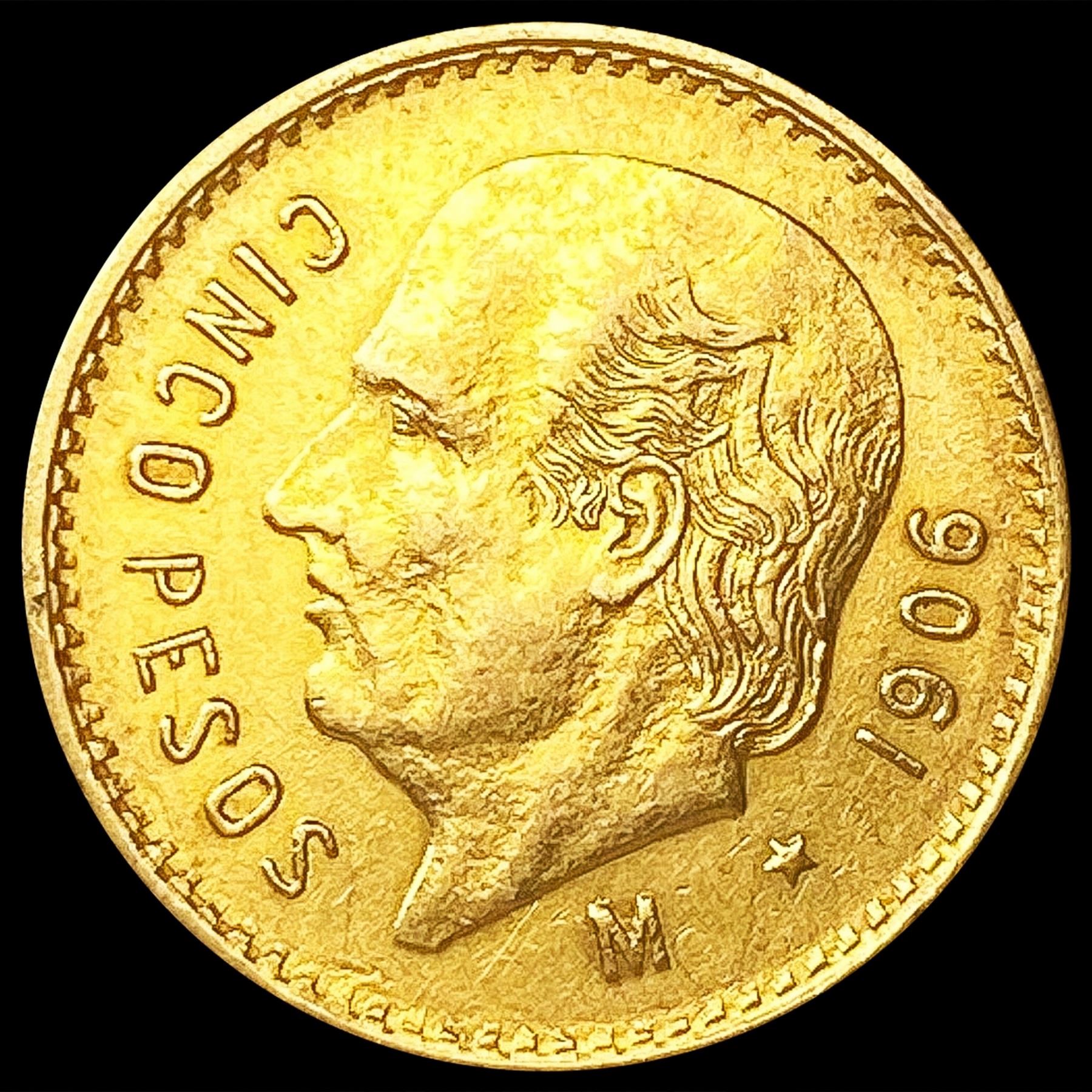 1906 Mexico .1206oz Gold 5 Pesos UNCIRCULATED