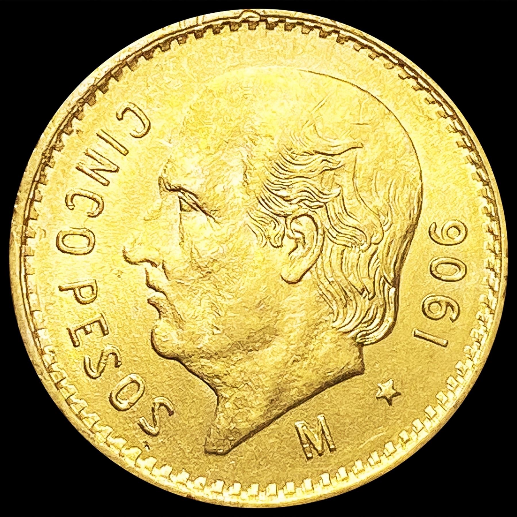 1906 Mexico .1206oz Gold 5 Pesos UNCIRCULATED