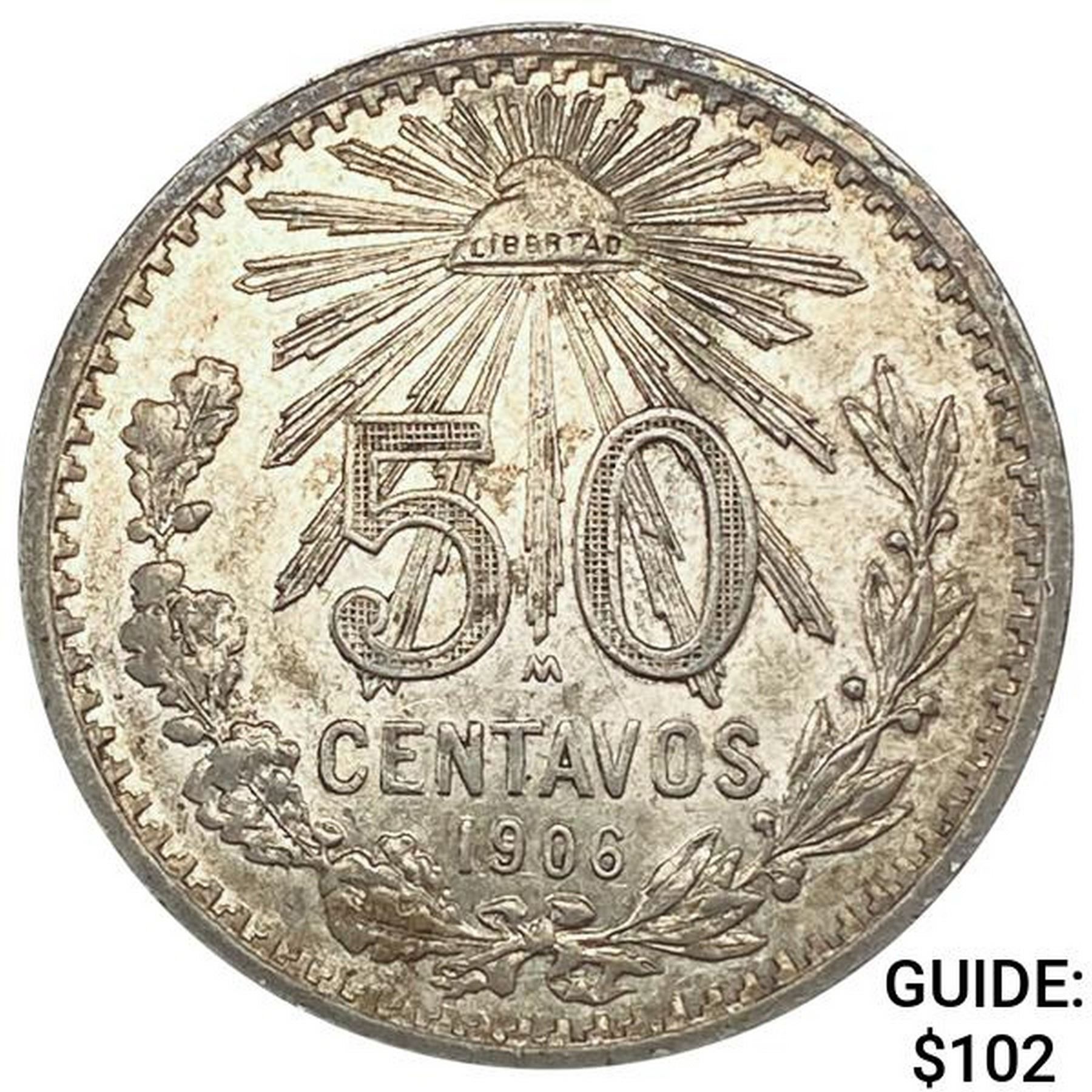 1906 Mexico 50 Centavos CLOSELY UNCIRCULATED