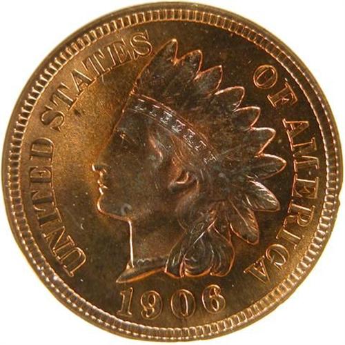 1906 NGC MS-66 Red. A superbly lustrous and near full red example