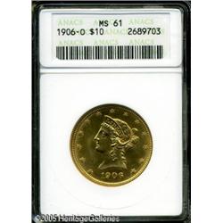 <B>1906-O $10 MS61 ANACS.</B></I> Rich orange-gold color and sharply struck but a mite bit dull. Lot:8837