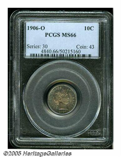 <B>1906-O<10C> MS66 PCGS.</B></I> Mottled deep violet, gold and indigo color give this Premium Gem high eye appeal. As expected, virtually free of distracting imperfections. Population: 10 in 66, 4 finer (6/05).