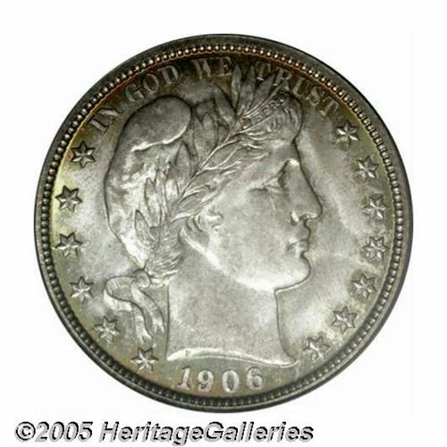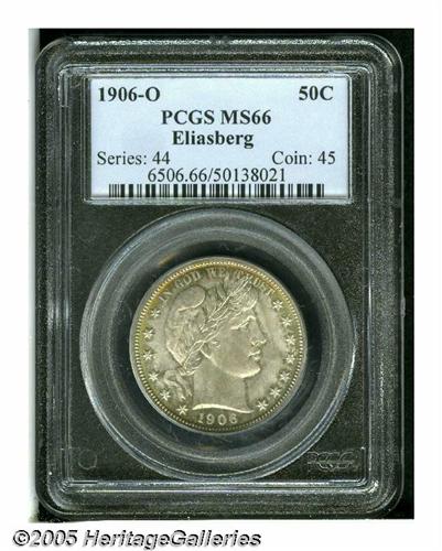 <B>1906-O<50C> MS66 PCGS.</B></I> Ex: Eliasberg. A solidly struck example with speckled olive-gold and russet highlights that fail to undermine the terrific luster displayed by this remarkable Premium Gem. Nearly unsurpassable quality and a fitting pedigree as well. Population: 5 in 66, 2 finer (5/05).