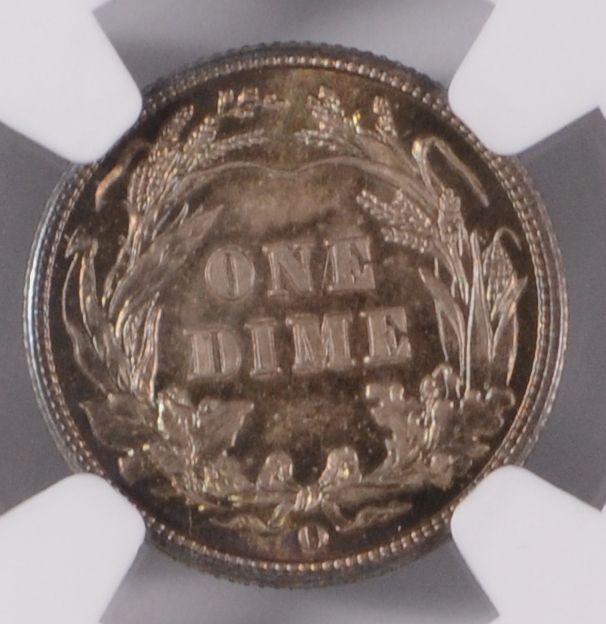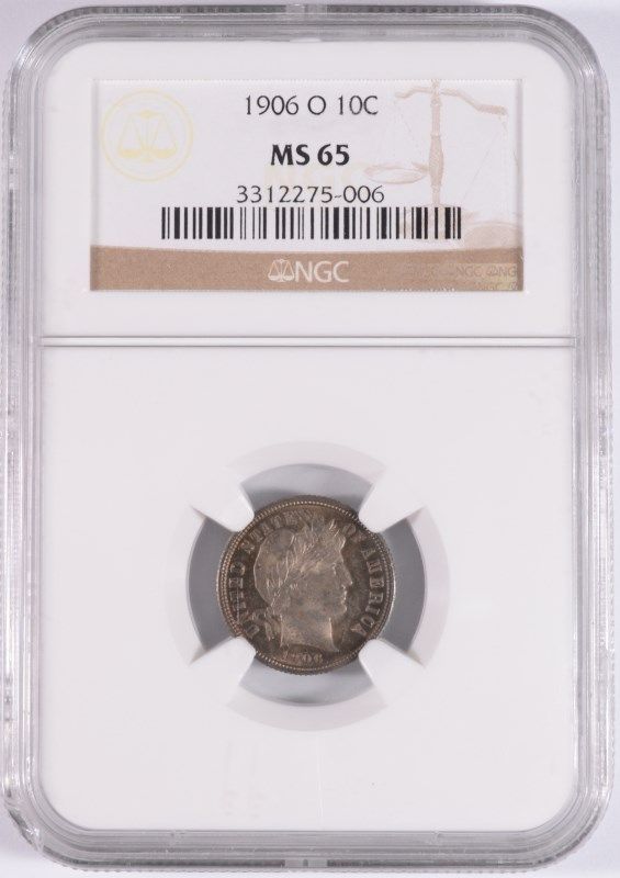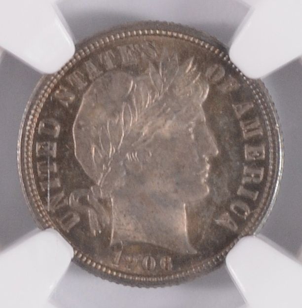 1906-O BARBER DIME, NGC MS-65, GORGEOUS RAINBOW COLORS!!