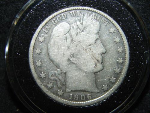 1906-O U.S. BARBER HALF DOLLAR. Coin is in circular case.