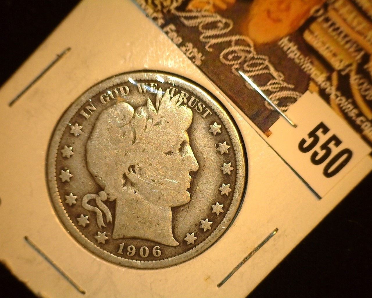 1906 P U.S. Barber Silver Half Dollar, Good+.